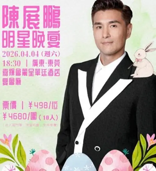 前几天,TVB视帝陈展鹏要在东莞办晚宴的消息炸了锅。 498元一位,10人一桌4680元,明码标价,吃顿饭,听他唱几首歌,还能聊上几句。